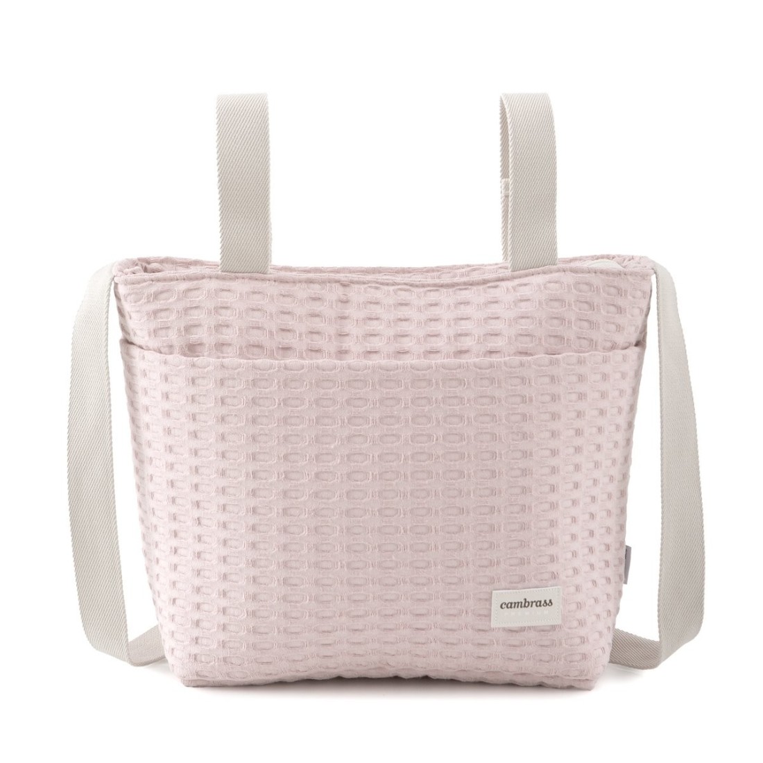 Con un estilo elegante y atemporal, en tono rosa empolvado, este bolso combina fácilmente con diferentes tipos de carritos y sillas de paseo.
