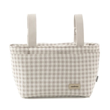 Su diseño en estampado vichy beige aporta un estilo clásico, elegante y atemporal que combina fácilmente con cualquier carrito. Cuenta con asas cortas para colgar en el cochecito, lo que facilita su uso diario, además de un interior espacioso para mantener todo bien organizado.