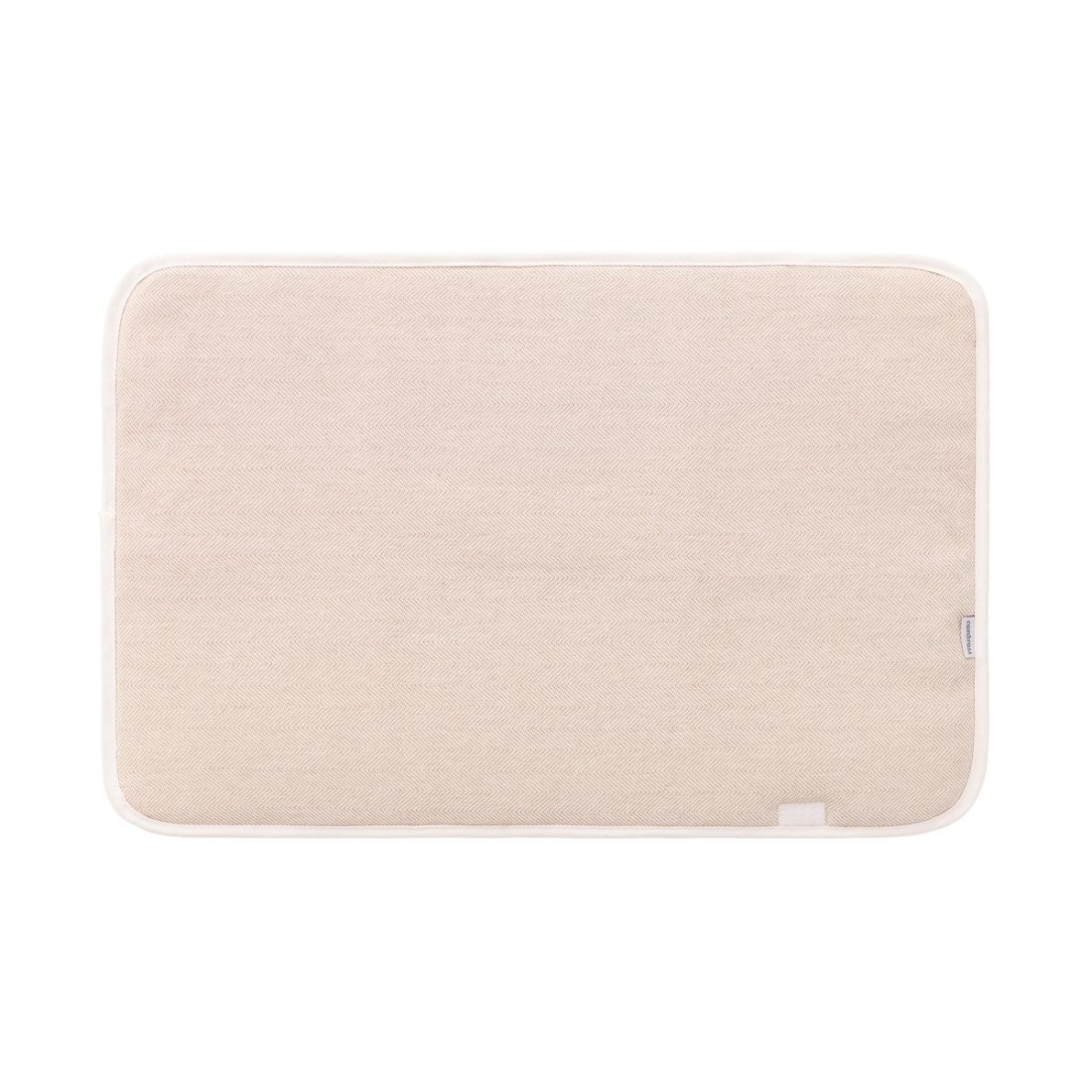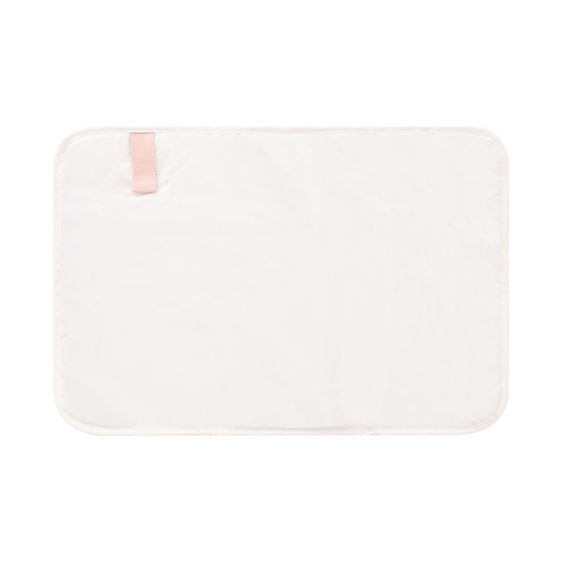 Su diseño en lino beige con detalles en rosa aporta un estilo elegante y atemporal. Gracias a su superficie acolchada y suave, el bebé permanece cómodo durante el cambio de pañal, mientras que su interior impermeable facilita la limpieza y garantiza la máxima higiene.