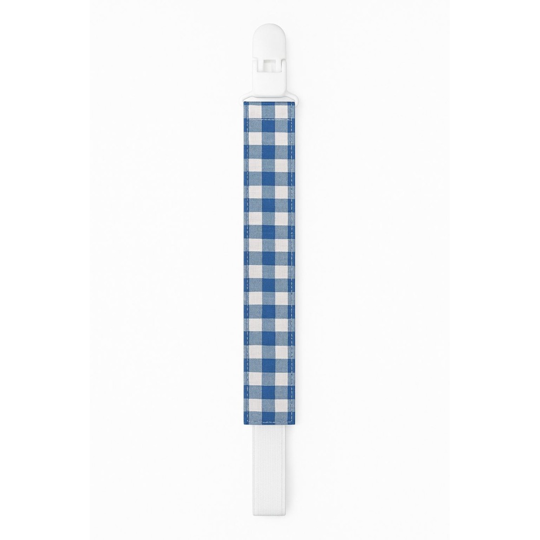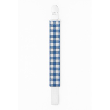 Chupetero Vichy azul con clip de seguridad. Evita que el chupete se pierda o caiga al suelo. Diseño exclusivo Mamapata.