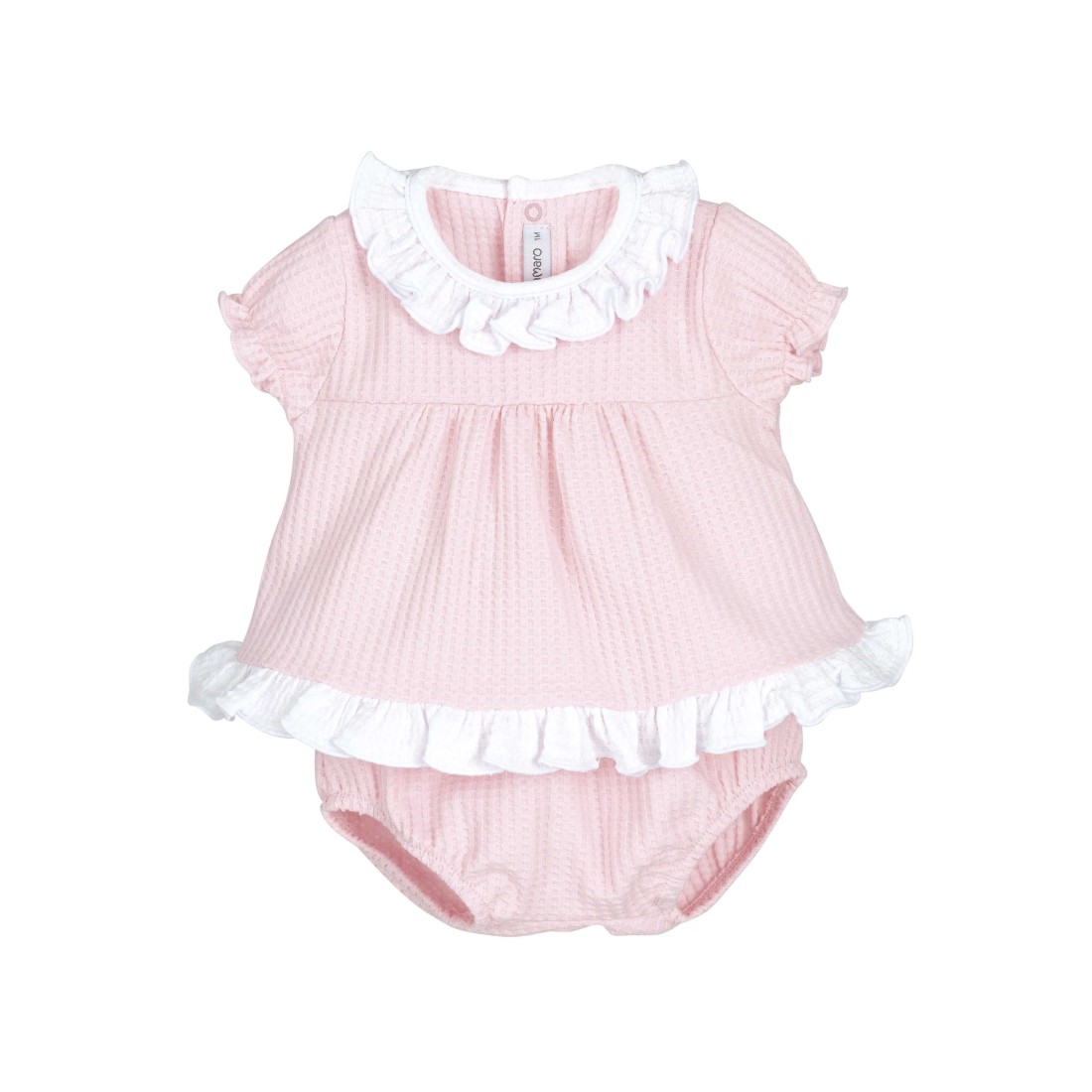 El conjunto pololo RODAS es una opción encantadora y práctica para vestir a tu bebé con estilo y comodidad. Está formado por una blusita de manga corta con cuello volante y un pololo a juego, creando un look dulce y cuidado.