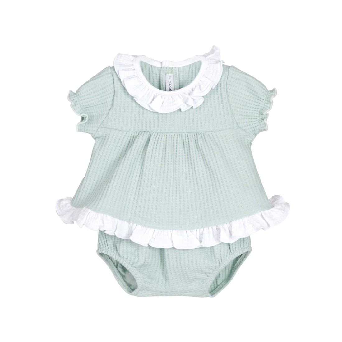 El conjunto pololo RODAS es una opción encantadora y práctica para vestir a tu bebé con estilo y comodidad. Está formado por una blusita de manga corta con cuello volante y un pololo a juego, creando un look dulce y cuidado.