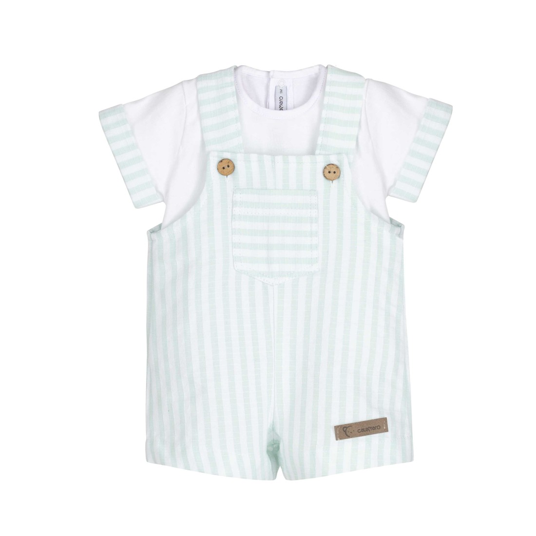 El conjunto peto Bundi es una prenda práctica y estilosa para el día a día del bebé. Está formado por una camiseta básica de manga corta combinada con un peto de tirantes, creando un look equilibrado y actual sin renunciar a la comodidad.