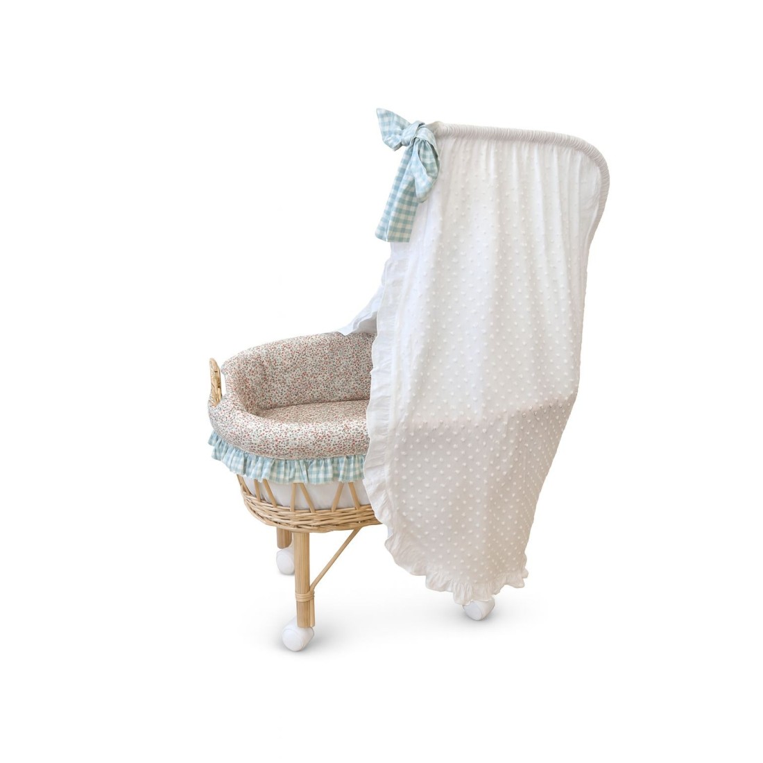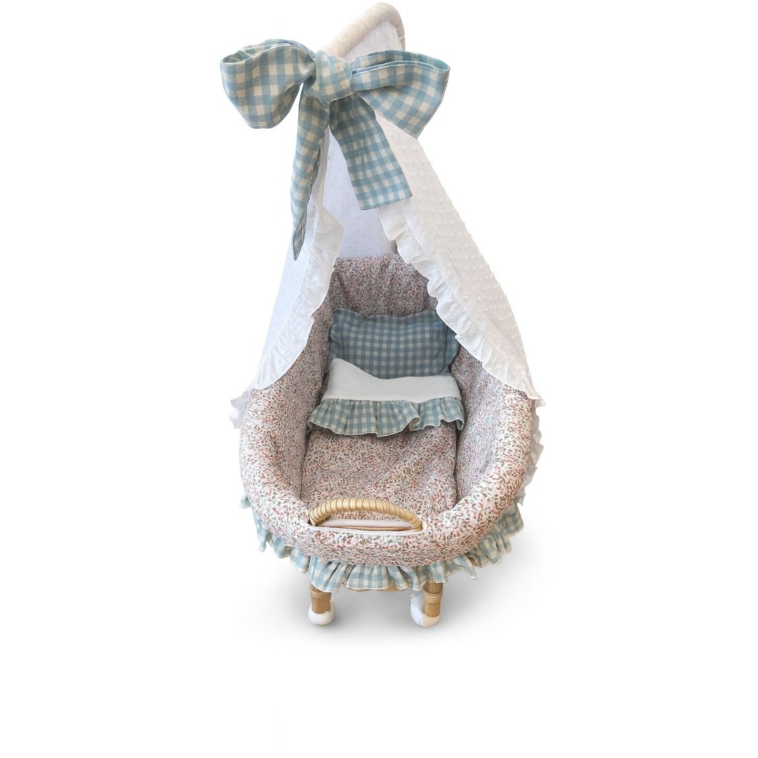 Cuna de Muñecas Artesanal con Dosel Plumeti y Lazo Vichy