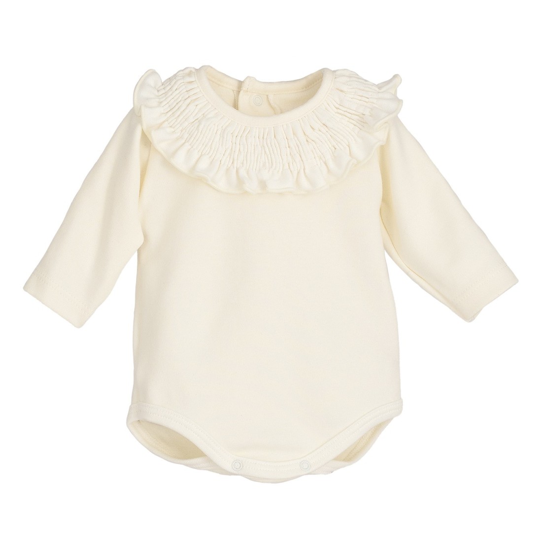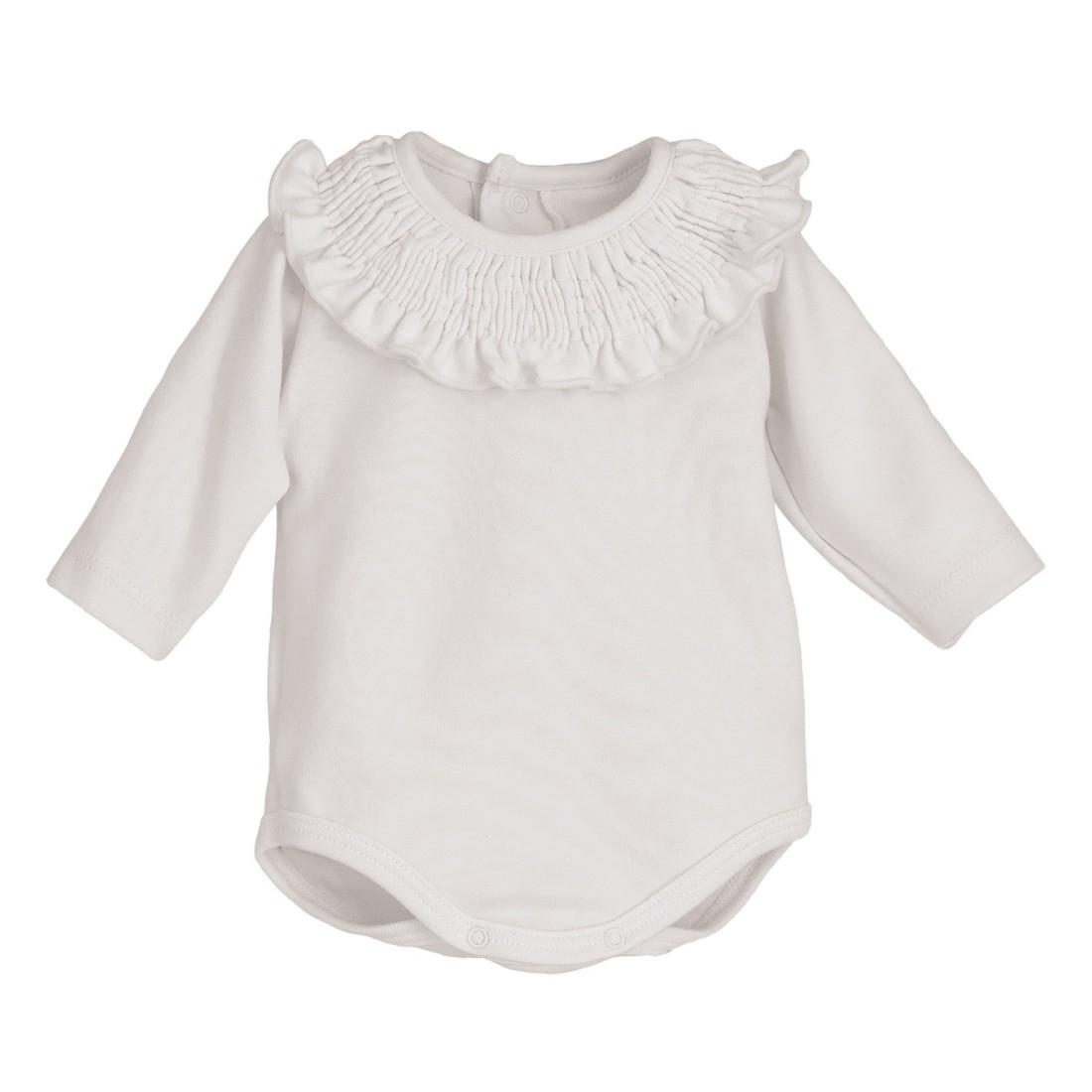 Su diseño clásico en tonos neutros lo convierte en una prenda versátil, perfecta para llevar sola en los meses de calor o como ropa interior en climas más frescos. Dispone de cierres automáticos a presión en la parte inferior, que facilitan el cambio de pañal de manera rápida y sencilla.