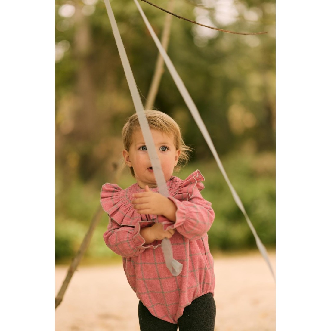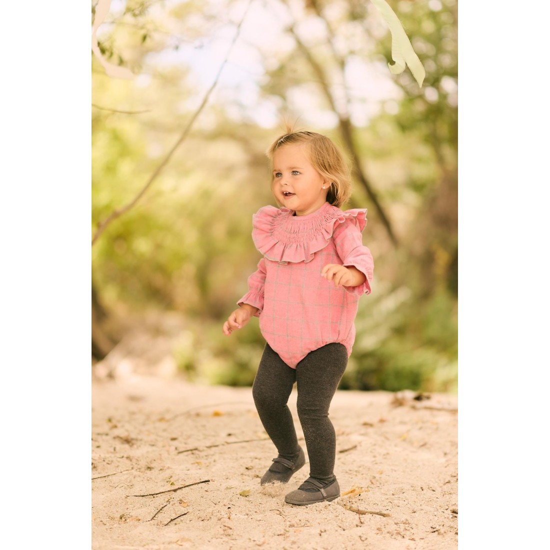 Pelele Paris cuadros rosa de Conttonbel, diseño exclusivo y tejidos suaves pensados para la comodidad del bebé.
