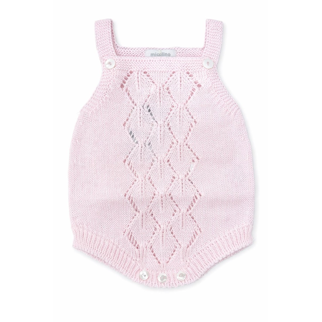 El body de punto con tirantes de Micolino es una prenda elegante y funcional, pensada para ofrecer comodidad y estilo en una sola pieza. Confeccionado en un punto fino y agradable al tacto, destaca por su dibujo de rombos calados en la parte frontal, que aporta un acabado artesanal y muy delicado.
