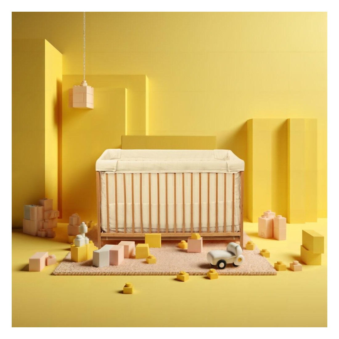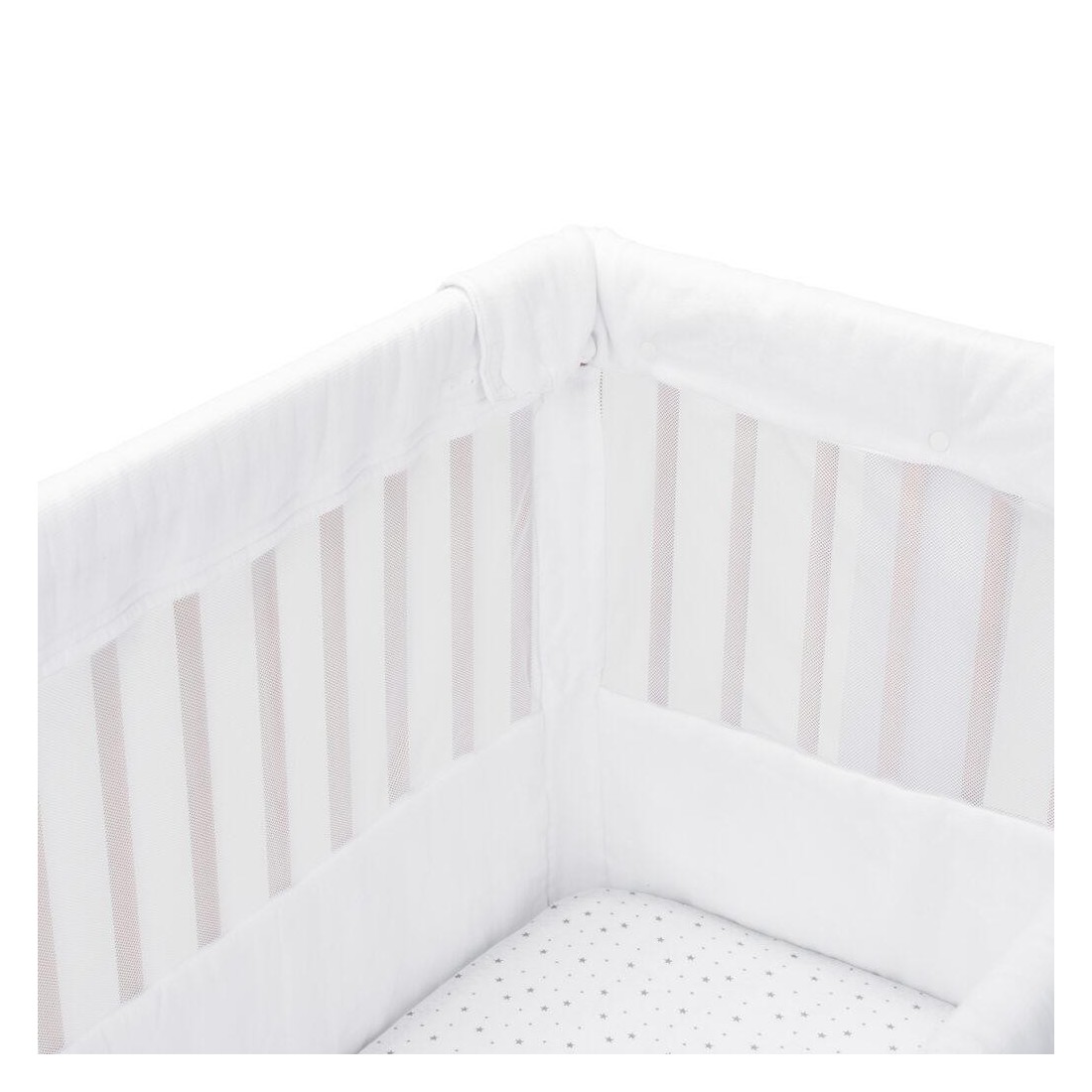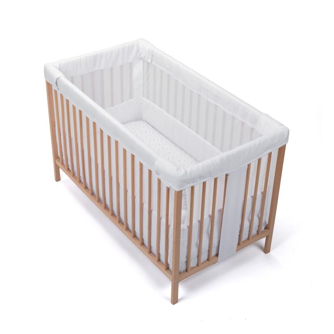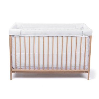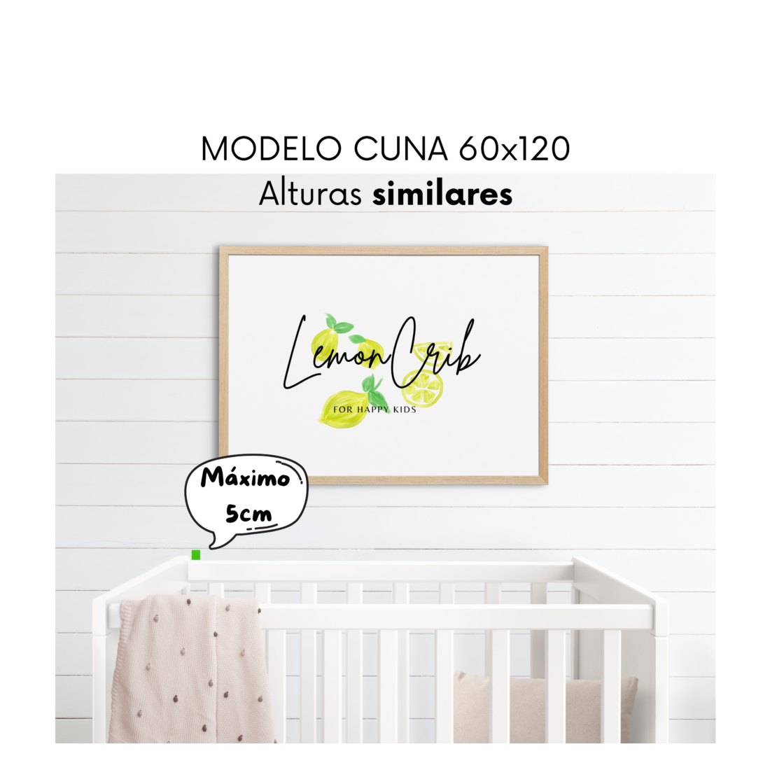 Gracias a su diseño con laterales de igual altura, ofrece una cobertura uniforme en todo el perímetro de la cuna, creando un espacio seguro, confortable y estéticamente equilibrado.