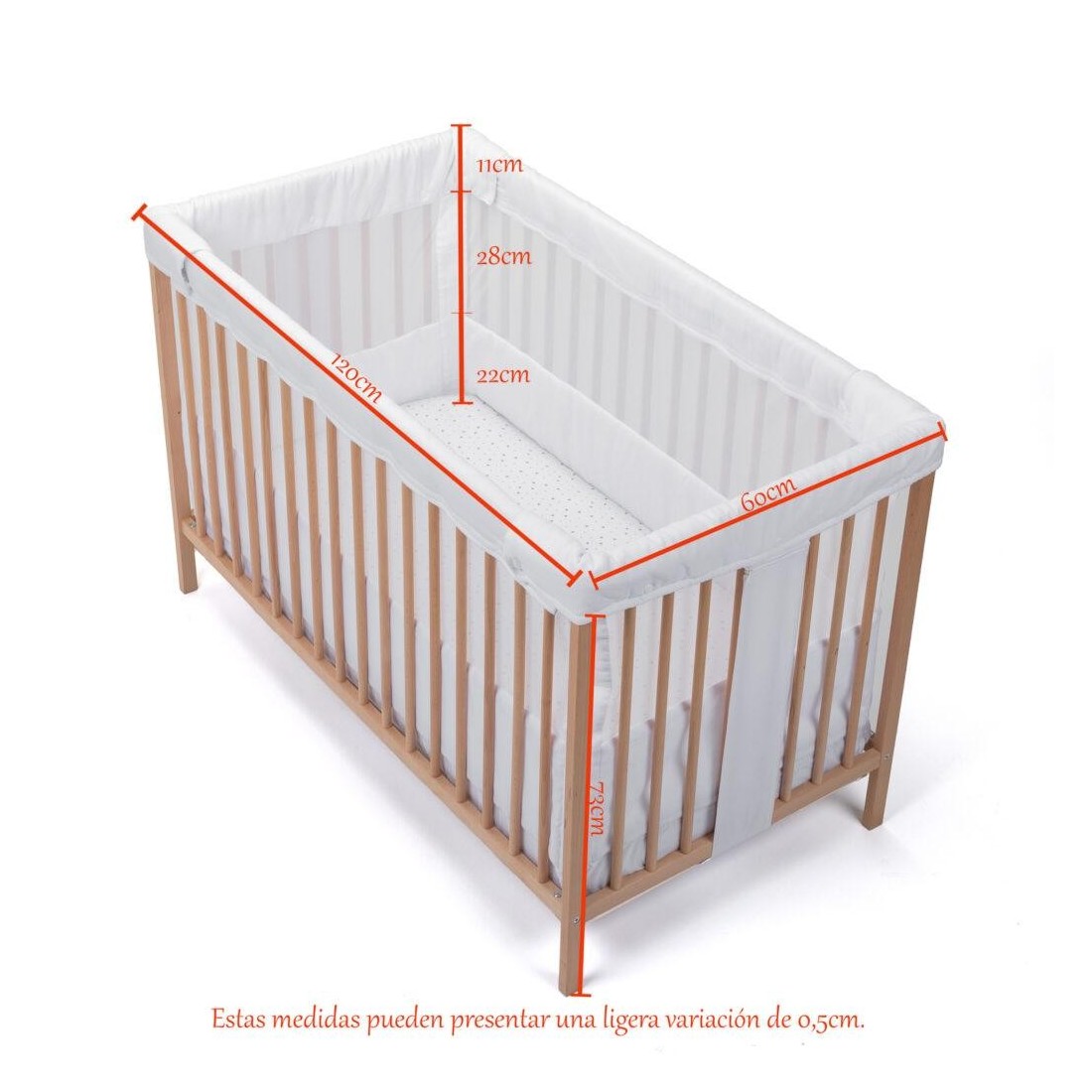 Fabricado con tejidos suaves, resistentes y transpirables, este protector combina calidad y funcionalidad. Además, su estilo moderno y atemporal lo convierte en un complemento perfecto para cualquier habitación infantil.