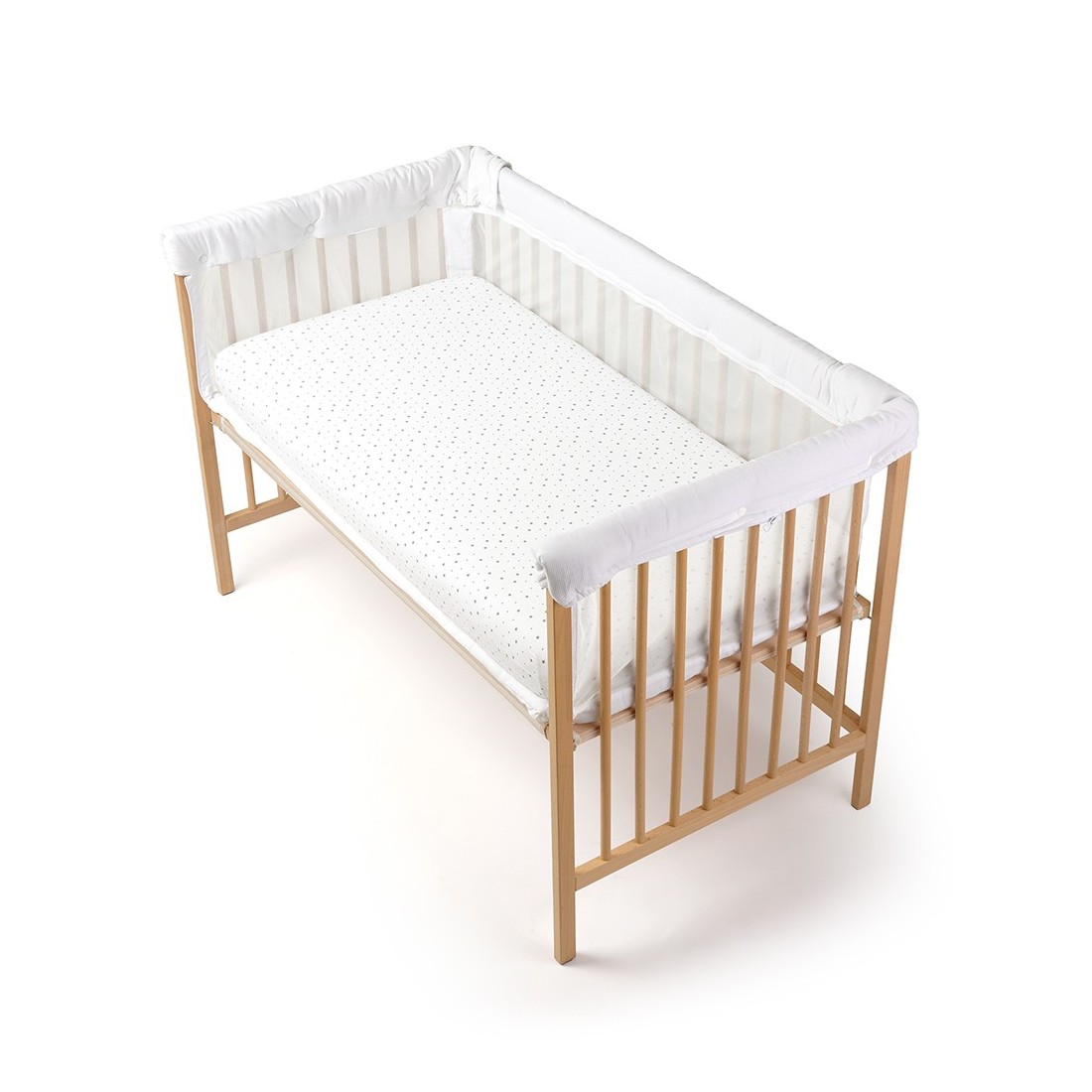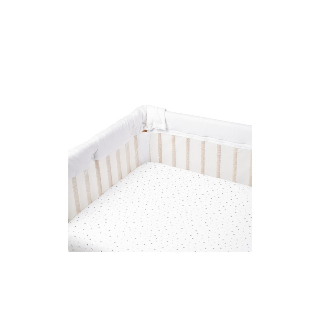 Su acolchado envolvente protege al bebé de golpes o rozaduras contra los barrotes de la cuna, creando un entorno seguro, acogedor y confortable. Además, al estar fabricado con tejidos suaves, resistentes y transpirables, garantiza comodidad y durabilidad incluso con un uso intensivo.