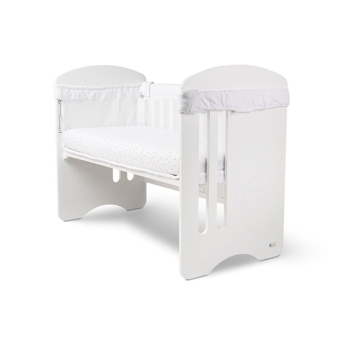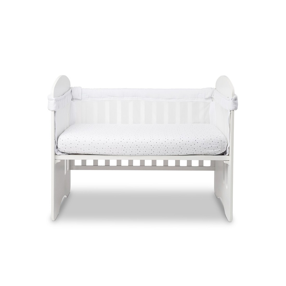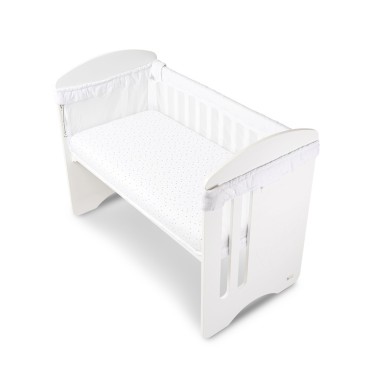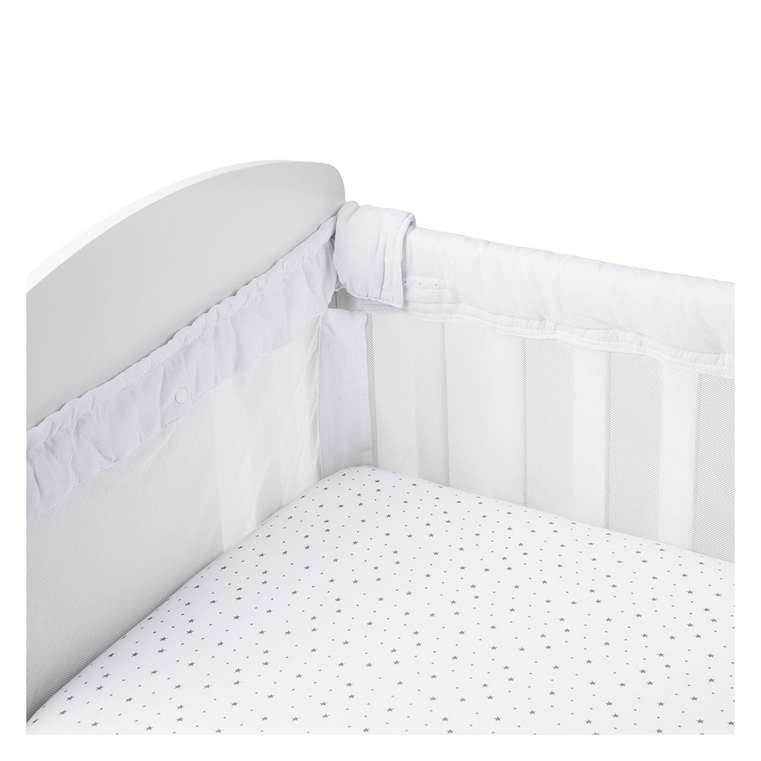 Su estructura acolchada recubre todo el perímetro de la cuna, evitando golpes o rozaduras contra los barrotes. Fabricado con tejidos de alta calidad, suaves y transpirables, proporciona un entorno seguro y confortable para el descanso del bebé.