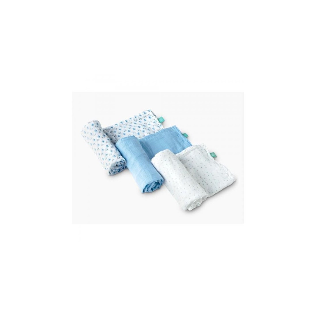 Pack de 3 muselinas Koala Babycare Soft Touch de 80x80 cm en color azul. Fabricadas con algodón 100% orgánico, son suaves, transpirables y perfectas para cuidar la piel sensible del bebé en cualquier momento del día.