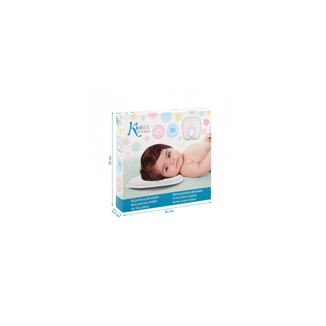 La almohada ergonómica para bebé Kiokids blanca (22x19x3 cm) está especialmente diseñada para proporcionar un apoyo suave y adecuado a la cabeza del bebé durante el descanso.