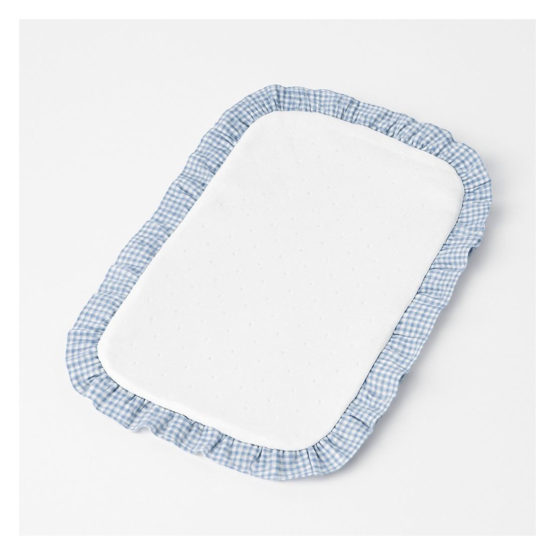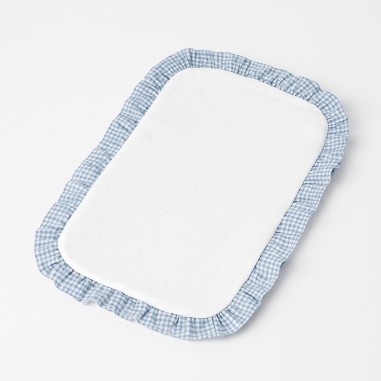 El Salvababas Vichy Azul con Volante de Mamapata es un accesorio indispensable para el cuidado diario del bebé. Confeccionado en tejido de alta calidad, combina practicidad y diseño elegante gracias a su estampado vichy azul y su delicado volante alrededor.