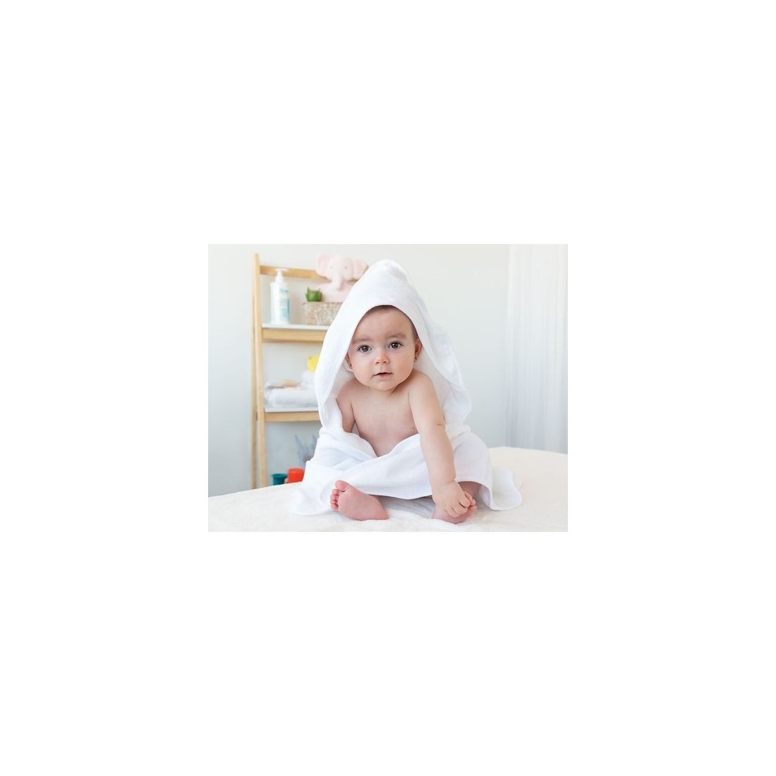 Su tamaño de 100x100 cm permite envolver cómodamente al bebé después del baño, manteniéndolo seco y calentito. Con un gramaje de 380 gr/m², esta toalla destaca por su calidad y durabilidad.