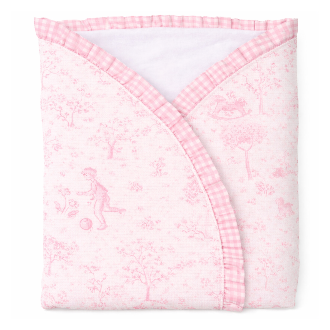 Confeccionado en tejidos suaves y agradables al tacto, es perfecto para envolver al bebé después del nacimiento, durante el descanso, la lactancia o los primeros paseos. Su estampado delicado en tonos verdes aporta un estilo dulce y atemporal, ideal tanto para niño como para niña.