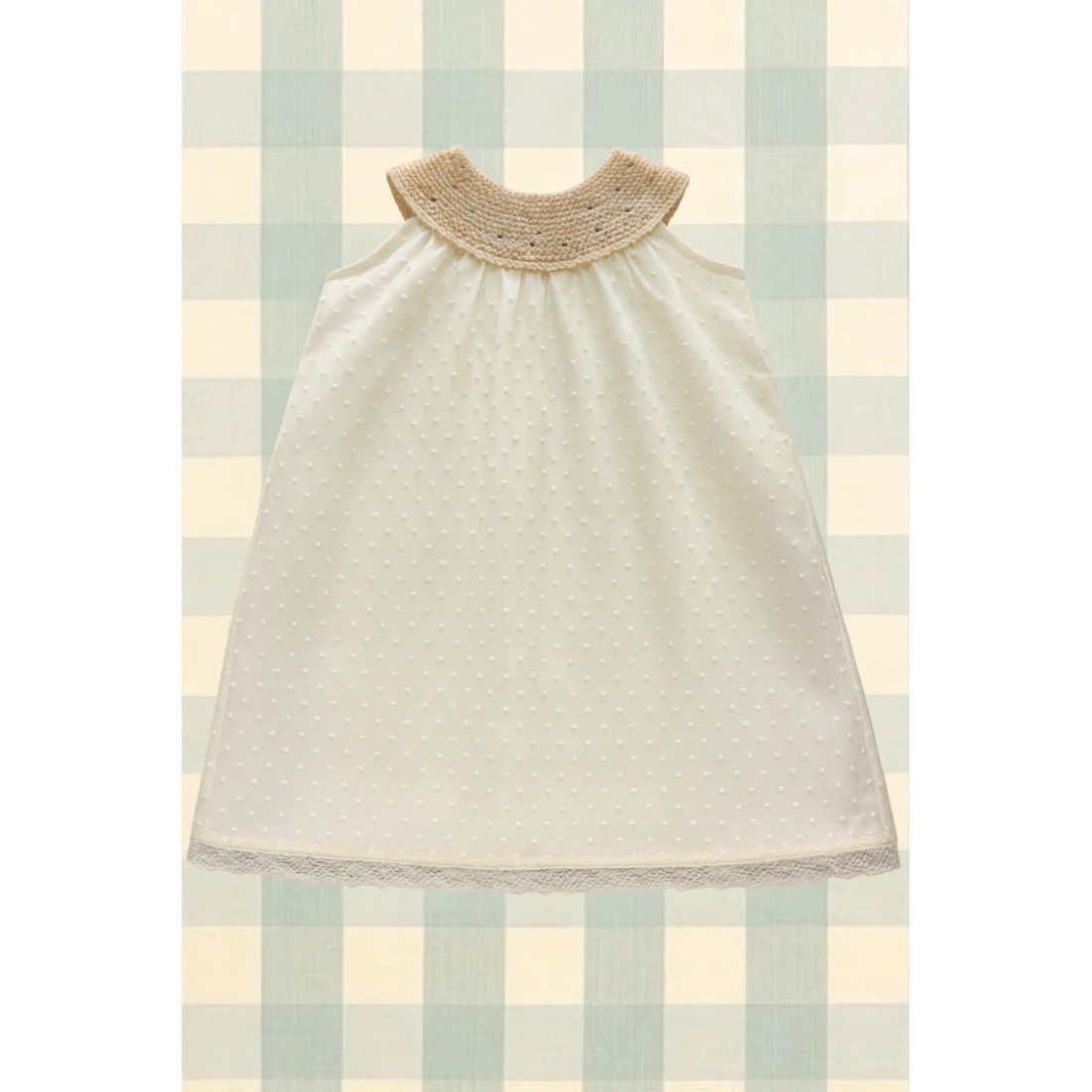 El Faldón plumeti es una prenda clásica y elegante, ideal para ocasiones especiales en la temporada de otoño e invierno. Confeccionado en un delicado tejido plumeti en color crudo, destaca por su canesú tejido en punto en tono beige, que aporta un contraste cálido y sofisticado.