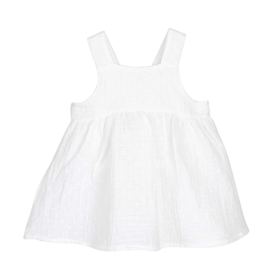 Gracias a su confección ligera y a su silueta amplia, este vestido permite una gran transpirabilidad y comodidad, adaptándose perfectamente al ritmo del bebé. Es una prenda versátil que puede llevarse sola o combinada con otras prendas según la temporada.