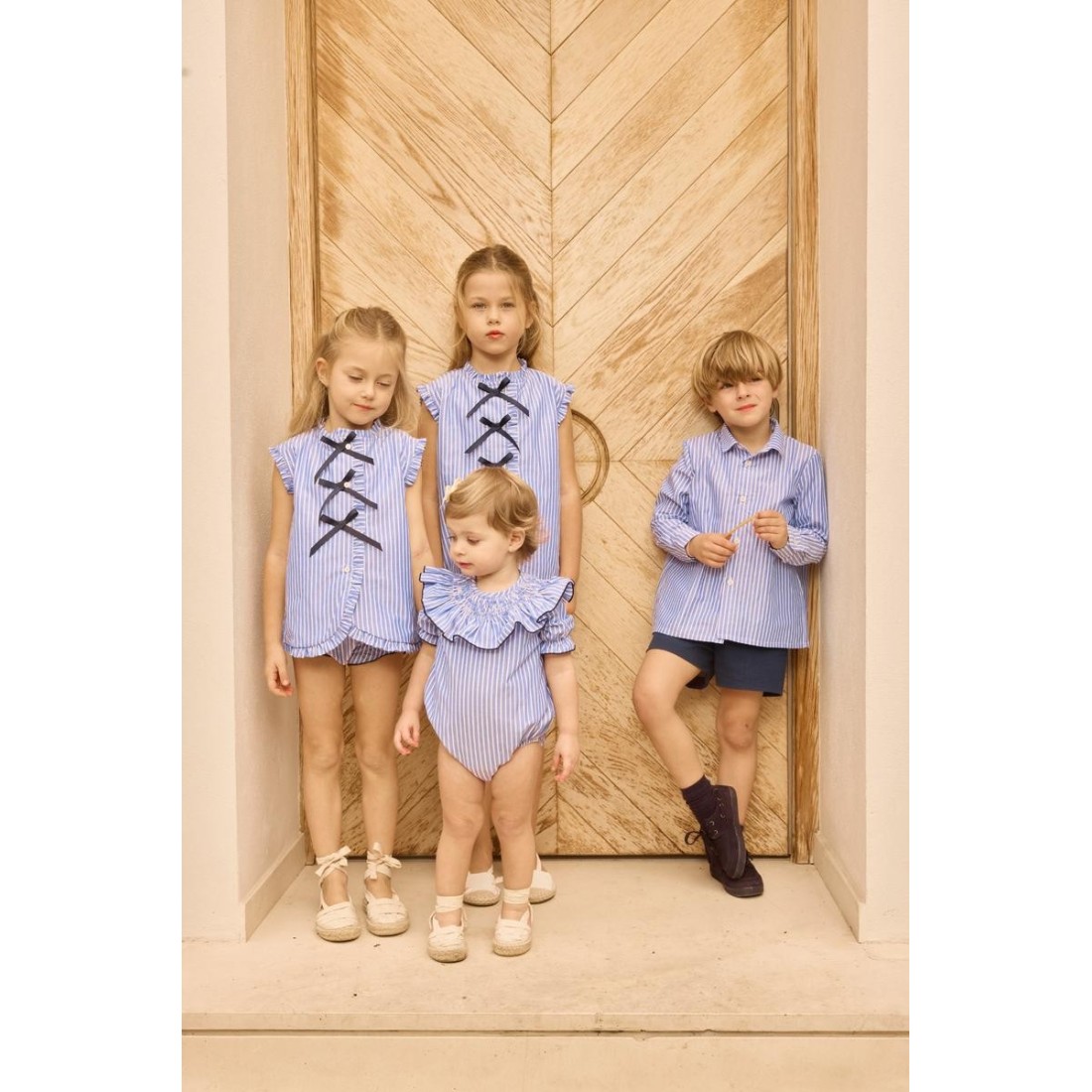 Confeccionado en tejido ligero y agradable al tacto, es perfecto para celebraciones, ceremonias o conjuntos coordinados entre hermanos.