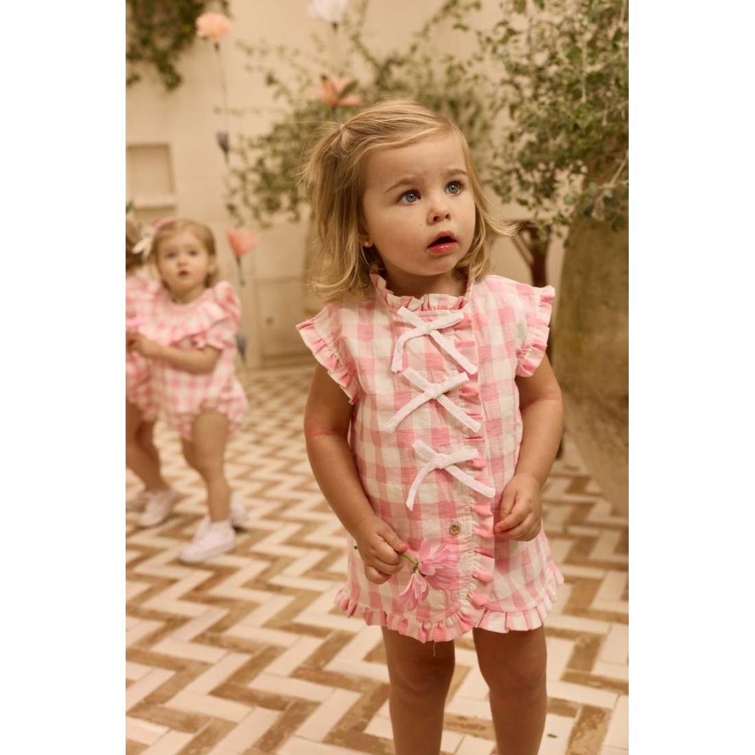 El vestido Cloe Vichy Fresa y Nata es una prenda llena de encanto y delicadeza. Su estampado de cuadros rosa y blanco aporta un estilo clásico renovado, perfecto para ocasiones especiales y conjuntos coordinados.